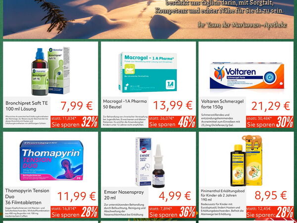 Sollen Rezepturen - Salben, Kapseln, Lösungen - individuell und zeitnah hergestellt werden, ist die Mariannen-Apotheke der richtige Ort dafür; nach Standards in höchster pharmazeutischer Qualität. Arzneimitteltherapiesicherheit (AMTS) ist eine Serviceleistung, bei der wir Ihre Medikation individuell analysieren. Ziel ist die sichere und sachgerechte Anwendung Ihrer Medikamente und mögliche Interaktionen auszuschließen. Die Beratung erfolgt in Ruhe in unserem separaten Beratungszimmer. Hier können wir auch eventuelle Unklarheiten, Sorgen oder Fragen, die Sie bezüglich Ihrer Medikamente oder anderer Anliegen haben, mit Ihnen diskret besprechen.